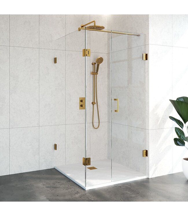 Douchecabine Venus Vierkant Draaideur met Draaibare Zijwand 98.8x97.7x200cm Antikalk Helder Glas Profielloos 8mm Veiligheidsglas Geborsteld Goud. Lees meer.