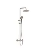 De opbouw regendouche is gemaakt van duurzaam messing en heeft een prachtige geborsteld nikkelafwerking dankzij de PVD-coating. Dit geeft niet alleen een luxe uitstraling, maar maakt de set ook bestand tegen slijtage. De AquaHeat-technologie garandeert een constante en aangename watertemperatuur, terwijl de kalkwerende innovatie het onderhoud eenvoudig houdt.