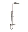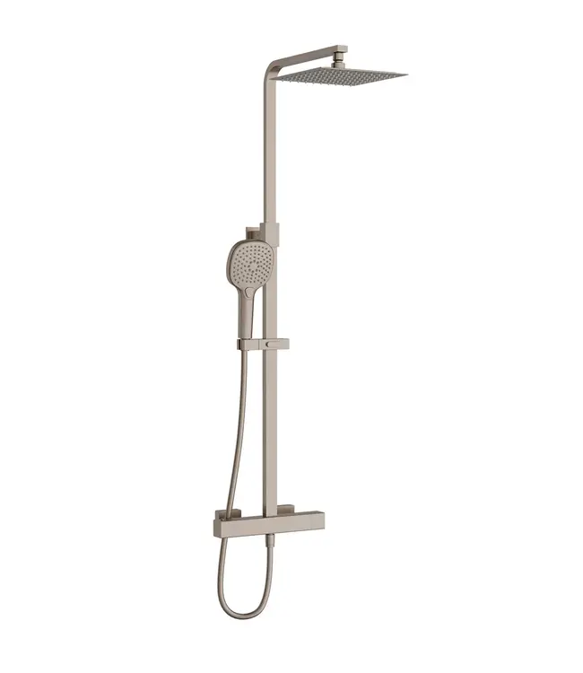 Deze stijlvolle regendoucheset, uitgevoerd in geborsteld nikkel, voegt direct een modern en verfijnd accent toe aan je badkamer. De 24 cm brede, vierkante hoofddouche zorgt voor een gelijkmatige waterverdeling, waardoor je het gevoel hebt onder een zachte regenbui te staan. Dankzij de innovatieve kalkwerende technologie blijven de sproeigaatjes kalkvrij en blijft de waterstraal optimaal.