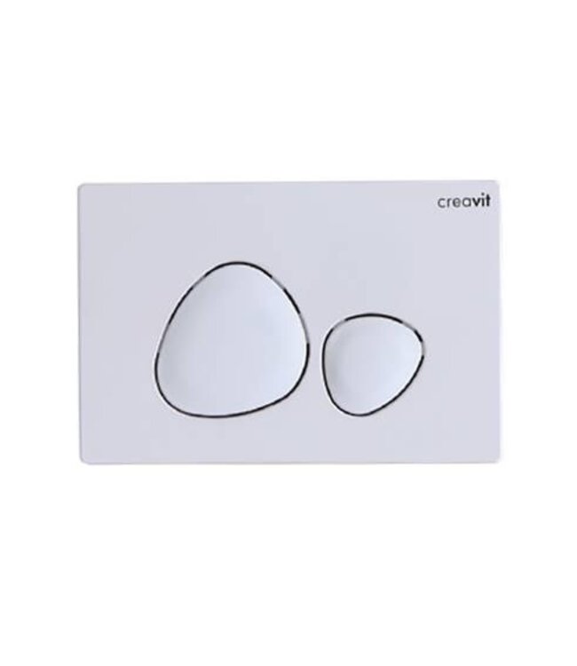 De Creavit Drukplaat Hoogglans Wit Welness Bedieningspaneelin de kleur Wit, is een modern vormgegeven bedieningspaneel. Met twee druktoetsen voor de dubbele waterbesparende spoelfunctie is deze uit hoogwaardig kunststof vervaardigde drukplaat eenvoudig te bedienen. Qua design past dit bedieningspaneel in iedere badkamer of toiletruimte.