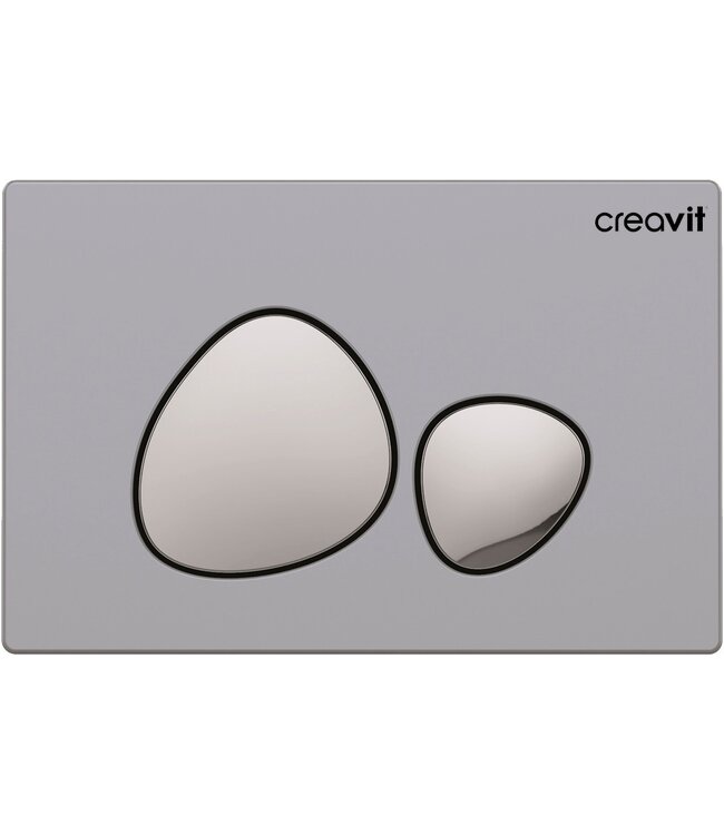 De Creavit bedieningspaneelin de kleurMat Grijs, is een modern vormgegeven drukplaat met voldoende kwliteit en betaalbaar met elke budget. Met twee druktoetsen voor de dubbele waterbesparende spoelfunctie is deze uit hoogwaardig kunststof vervaardigde drukplaat eenvoudig te bedienen. Qua design past dit bedieningspaneel in iedere badkamer of toiletruimte.