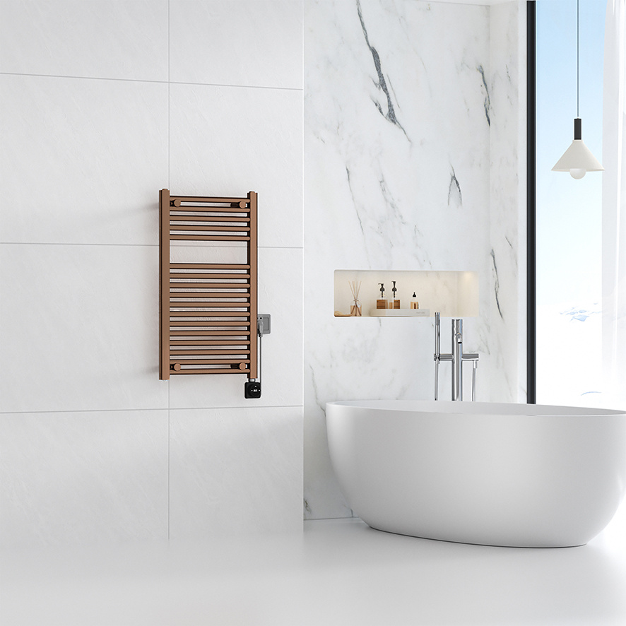 De Elara Smart WiFi is een hoogwaardige elektrische handdoekradiator die esthetiek combineert met moderne verwarmingstechnologie. Met een afmeting van 76x45 cm en een vermogen van 400 Watt biedt dit model een efficiënte oplossing voor badkamers en kleine ruimtes, zonder afhankelijkheid van het gasnet. Dankzij de PVD-coating in geborsteld brons koper geniet u van een slijtvaste, luxueuze afwerking die past in een industrieel of modern interieur.