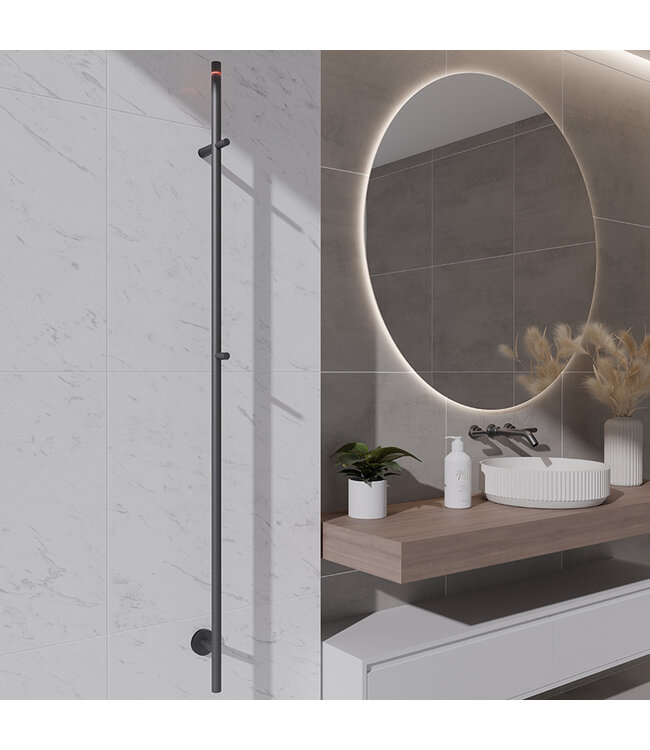 Creëer een oase van warmte met onze elektrische staafhanddoekradiator Wiesbaden Callista in de stijlvolle kleur gunmetal. Deze tijdloze radiator, met een lengte van 150 cm, is niet alleen een praktische toevoeging aan jouw badkamer,maar ook een echte eyecatcher.
