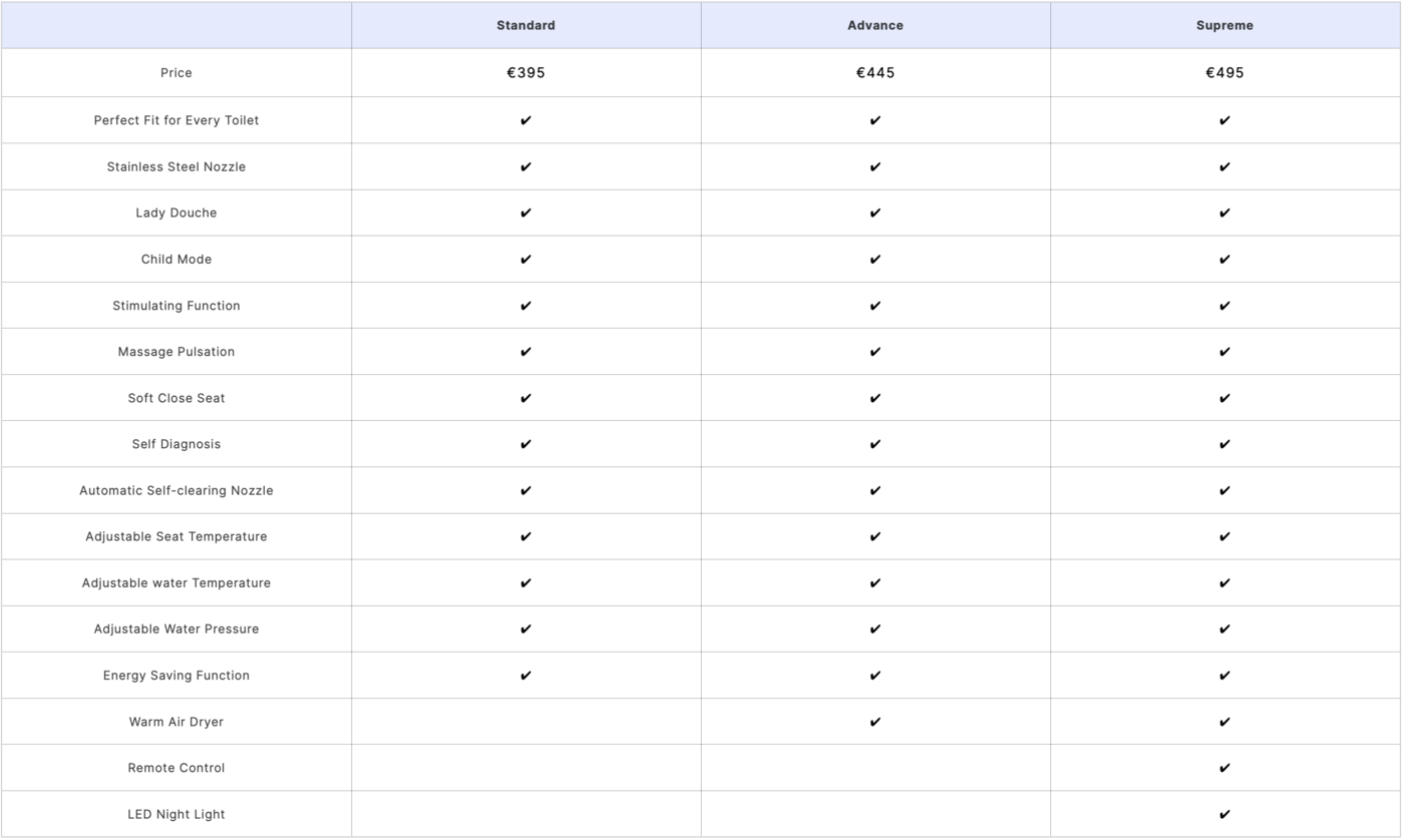 - Gebruikers sensor (bidet werkt alleen na plaatsnemen op zitting)