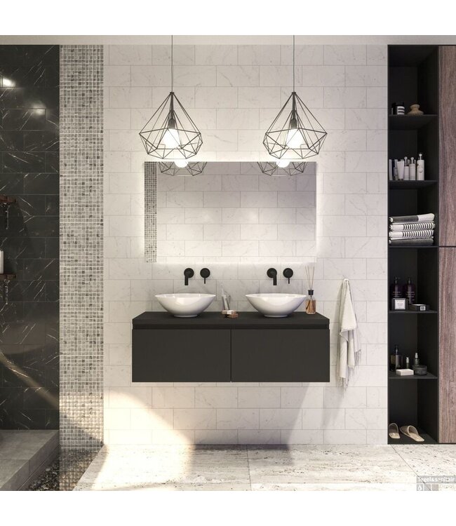 Om de bestelling compleet te maken, raden wij aan om ook een inbouw wastafelkraan, opbouw wastafelkraan en waskom erbij te bestellen. Deze items zijn perfect op elkaar afgestemd en vullen het Gliss Design Eros Badkamermeubel met Topblad Mat Zwart 120cm perfect aan. Zo creëer je een complete en harmonieuze badkamer