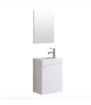 De bijbehorende spiegel heeft een afmeting van 40x60x2cm en de omlijsting is dezelfde kleur als de onderkast van het meubel. Zo heeft u duidelijk een compleet bijpassend setje in huis.Daarnaast is de fontein omkeerbaar, de deur zal altijd naar rechts open gaan.