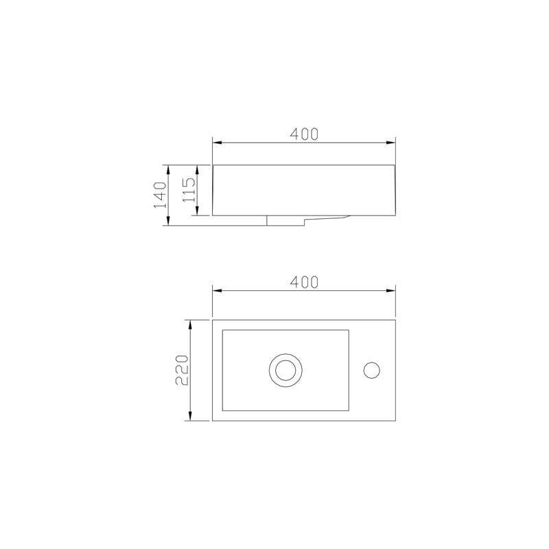 De spoelbak, gemaakt van Mineraalmarmer heeft de afmetingen van van 40cm breed, 22cm diep en 11,5cm hoog.