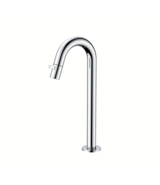 Deze extra hoge fonteinkraan (30 cm) is bij uitstek geschikt in combinatie met een verhoogde fontein of design-wastafeltje. De elegante ronde uitloop geeft een luxe uitstraling, waardoor deze kraan past in zowel moderne toiletten als klassieke badkamerstijlen.