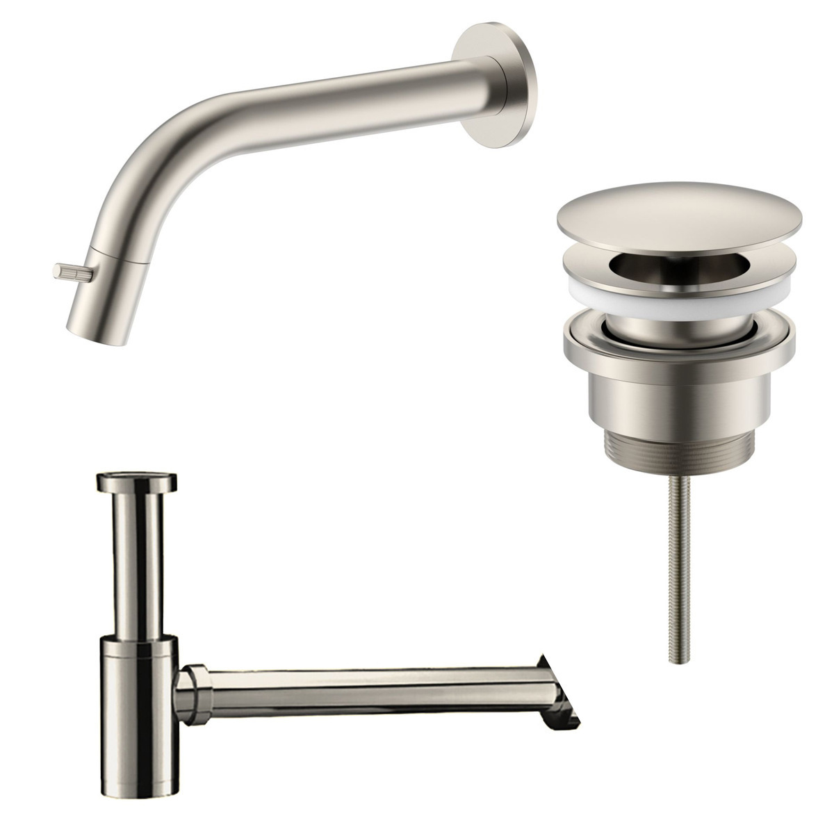 Set met wandkraan, sifon en clickwaste-afvoerplug