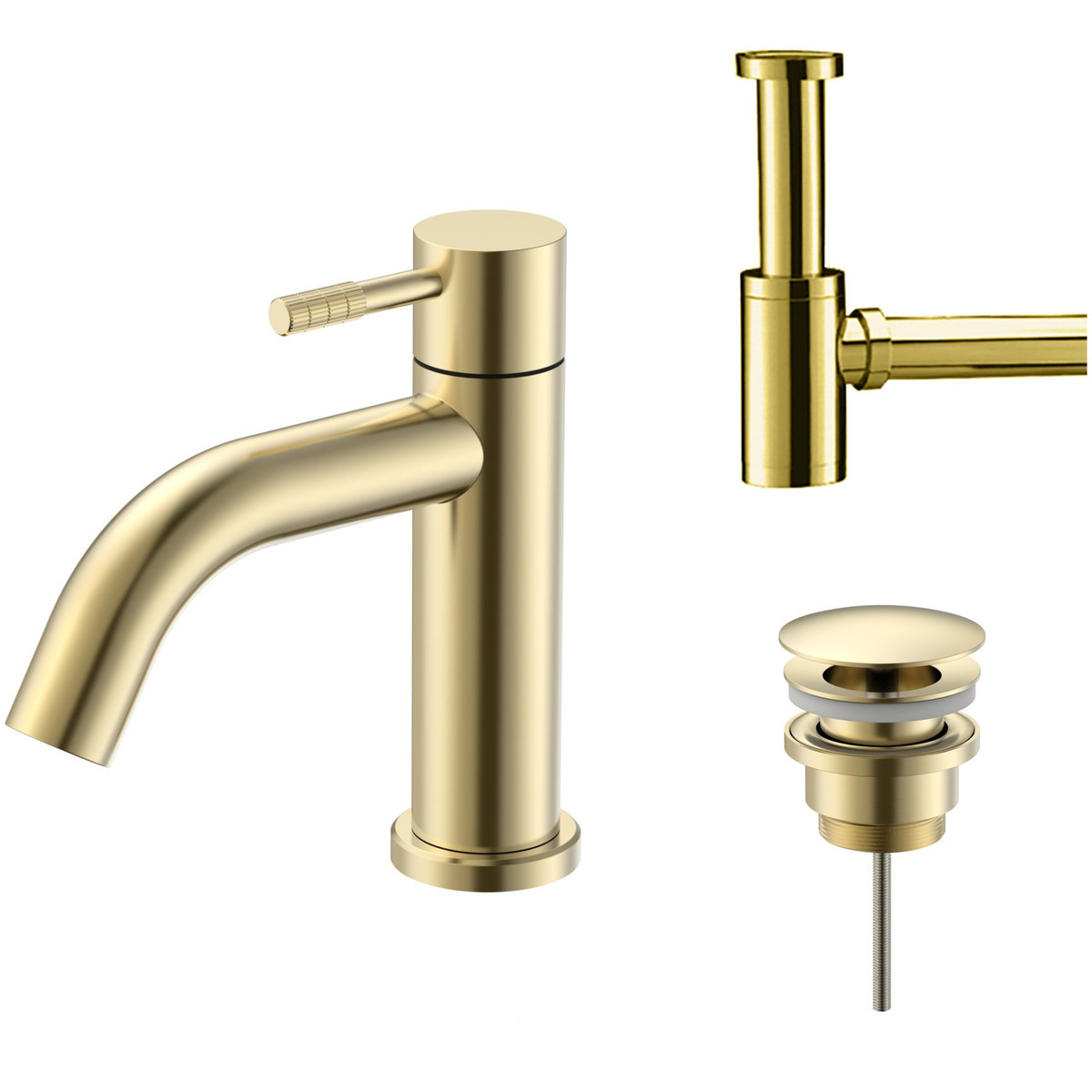 Fonteinkraan set Stria Geborsteld Goud (PVD) Toiletkraan + Sifon + Clickwaste