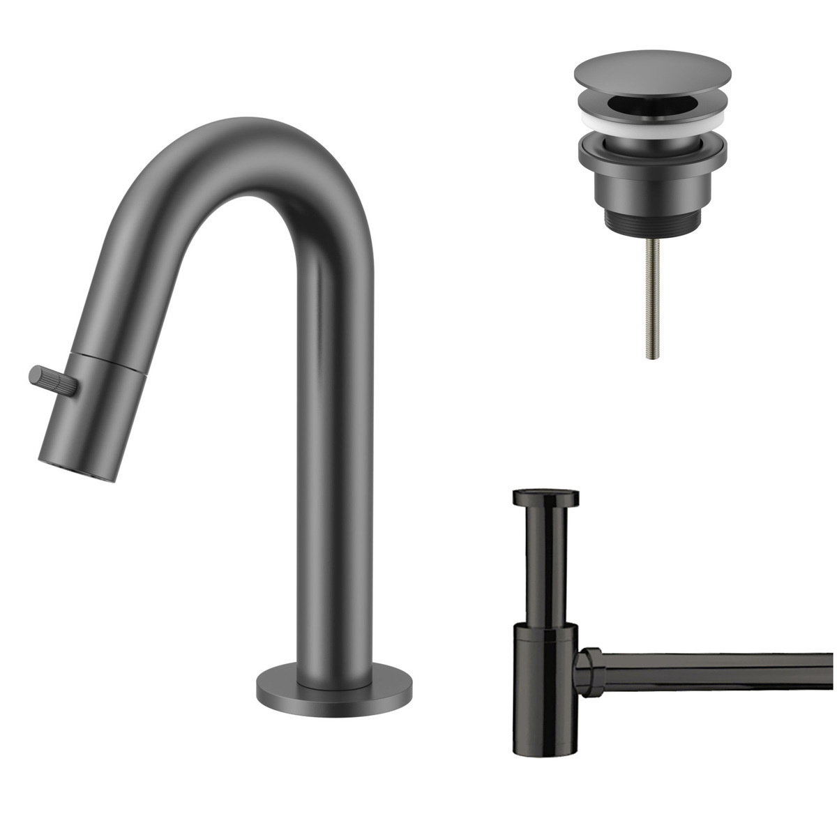 Fonteinkraan set Stria Lux Gunmetal (PVD) Toiletkraan + Sifon + Clickwaste