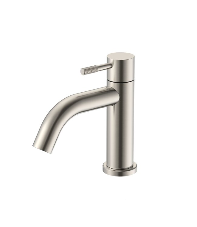Deze unieke opbouwkraan is vervaardigd uit hoogwaardig roestvrijstaal en kenmerkt zich door een betoverende ribbelstructuur op de hendels. Dit onderscheidende ontwerp geeft uw toilet of badkamer direct een chique en exclusieve uitstraling.