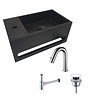 Zwarte toiletfonteinen zijn tegenwoordig dé trend, en de Fonteinset Mila speelt hier perfect op in. Het luxe contrast tussen het diepe zwart van de fontein en het glanzende chroom van de kraan en de handdoekhouder creëert een moderne en stijlvolle uitstraling. Deze set is een ware eyecatcher en voegt een vleugje elegantie toe aan jouw toiletruimte.