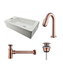 De combinatie van glans wit en de kleur koper maken van de Fonteinset Rhea Rechthoek Links - DC2781 een ware eyecatcher in uw toiletruimte of badkamer. De koperen details geven een extra touch aan de fonteinset die zorgen voor een mooie en unieke uitstraling. Met deze complete fonteinset creëert u in iedere toiletruimte of badkamer eenvoudig de gewenste look. De Fonteinset Rhea Rechthoek Links - DC2781 is makkelijk aan de wand te monteren maar kan ook mooi gecombineerd worden met een plank of wastafelonderkast.