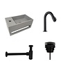 Door de geïntegreerde handdoekhouder is de Fonteinset Solid Surface Links - DC2817 extra praktisch. U heeft uw handdoek altijd bij de hand door de speciale opening aan de voorkant waar u de handdoek aan op kunt hangen. Deze fontein met betonlook is makkelijk te combineren met andere elementen en kleuren. De mat zwarte elementen zijn ook makkelijk te combineren met andere kleuren of juist heel leuk in combinatie met diverse mat zwarte badkameraccessoires. Het kraangat zit bij deze fontein aan de linkerkant.