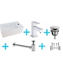 De fonteinset wordt geleverd met kraan en inclusief alle benodigde bevestigingsmaterialen, zoals een sifon, vaste waste en plugboutenset, waardoor de installatie een eenvoudige en probleemloze ervaring wordt.