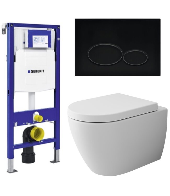 Geberit Toiletset UP 320 Jet-Flush Mat Wit Flatline Rimfree Softclose Quickrelease Toiletbril Alpha Mat Zwart