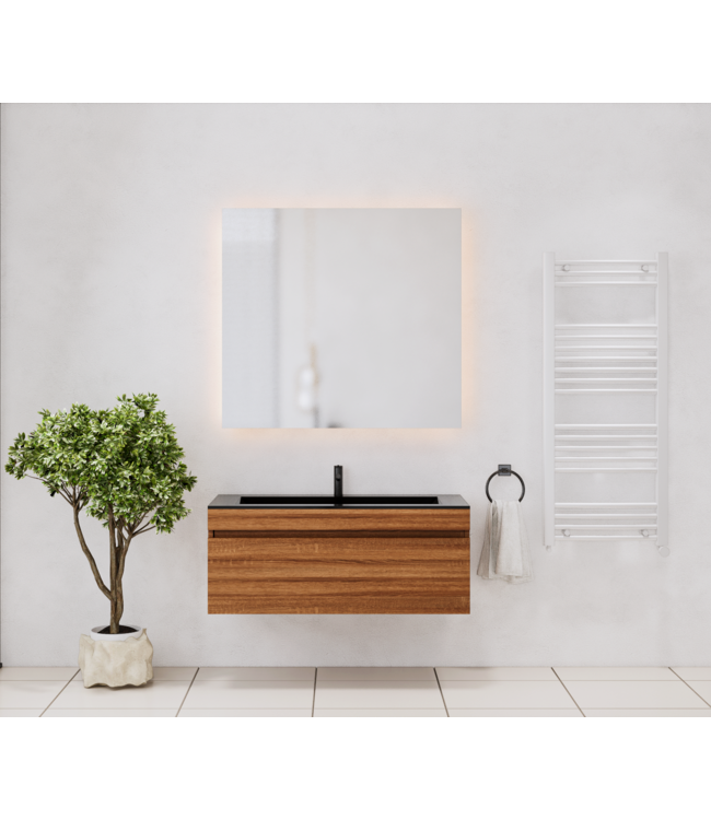 Met een afmeting van 100x45,5x40 cm biedt dit badkamermeubel voldoende ruimte zonder overweldigend te zijn. De DTC metalen ladegeleiders zorgen voor soepele en stille ladebewegingen, en met één ruime lade heb je genoeg opbergruimte voor al je badkamerbenodigdheden.