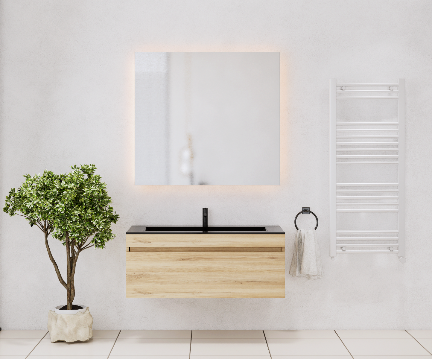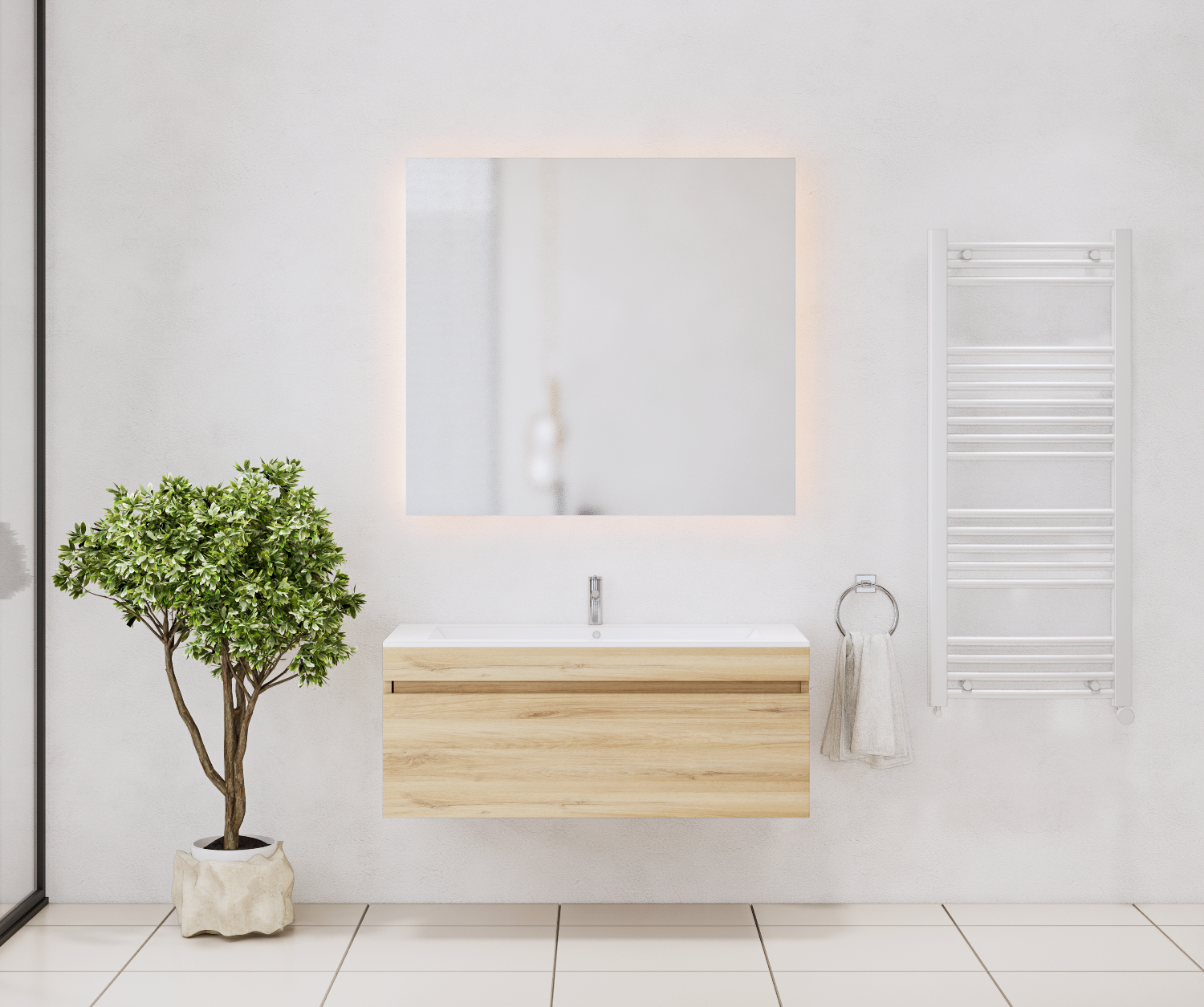 Met afmetingen van 100x45,5x40 cm biedt dit badkamermeubel voldoende ruimte zonder overweldigend te zijn. De DTC metalen ladegeleiders garanderen soepele beweging en een geruisloze sluiting van de enkele lade. Geen gedoe meer met rommelige badkamerspullen, alles netjes opgeborgen binnen handbereik.