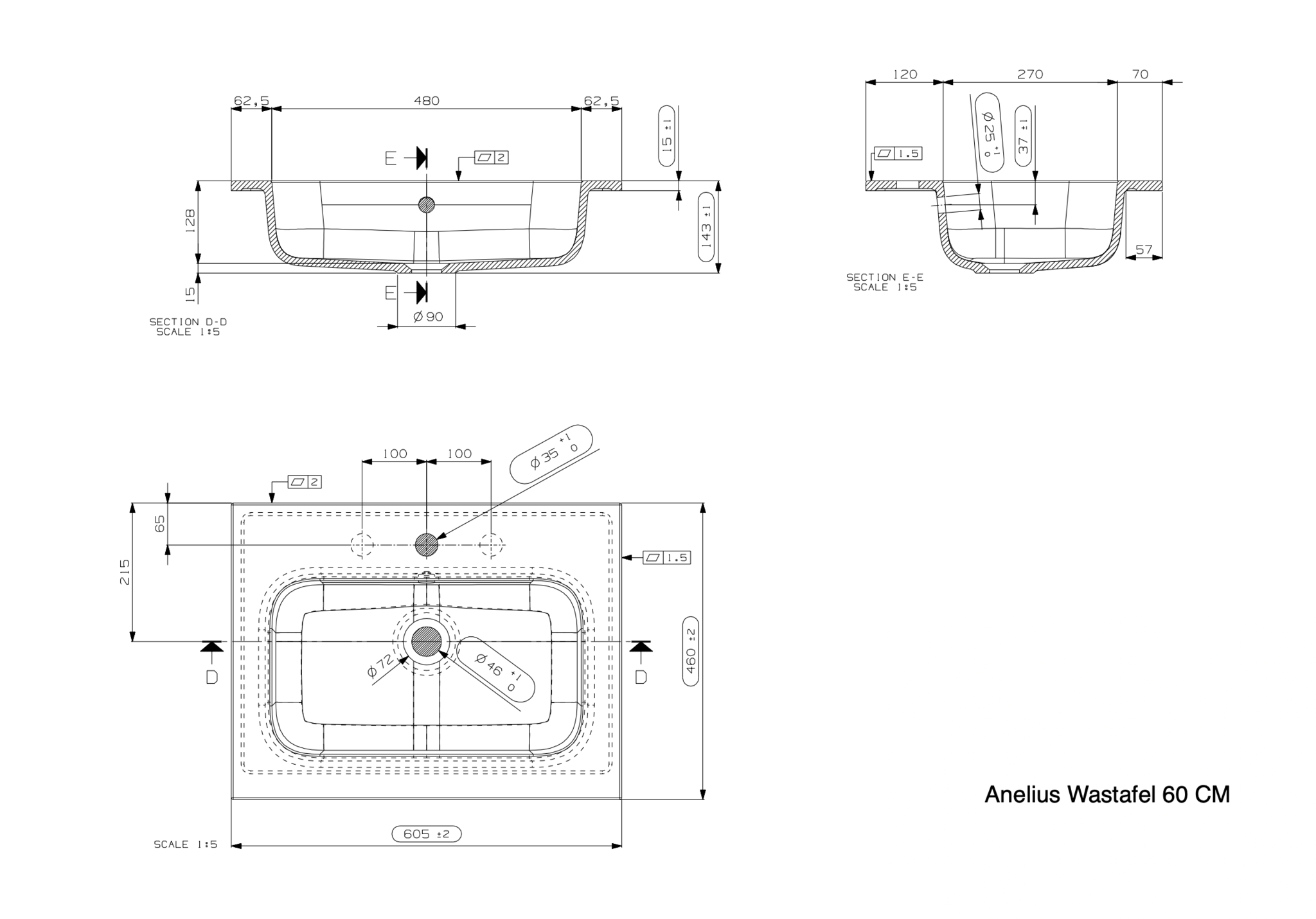 | Afmetingen Wastafel | 60,5 x 46 x 2 cm |