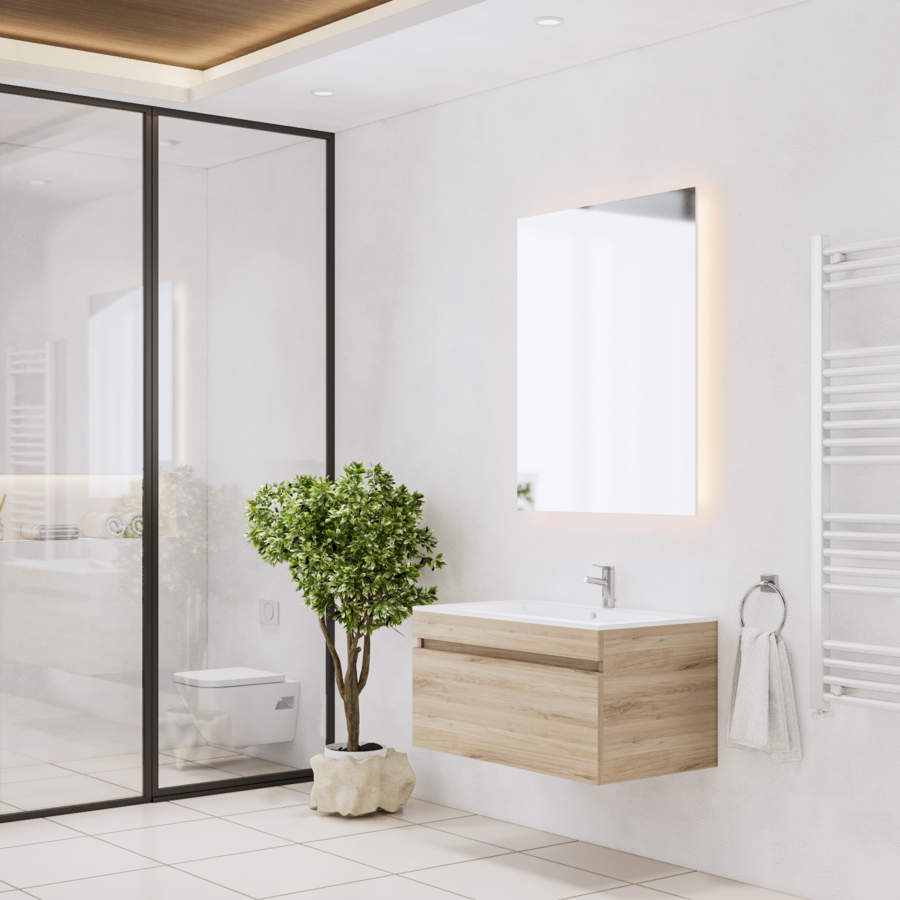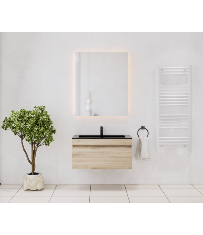 Kies jouw favoriete wastafel: wit, mat wit, of mat zwart. En de kraan? Die kies je zelf! Dit badkamermeubel biedt de vrijheid om jouw persoonlijke stempel op de ruimte te drukken. Geen uitsparing voor de sifon geeft je extra flexibiliteit bij de installatie.