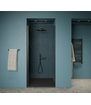 De douchedeur opent als een kunstwerk, met een soepele draaibeweging. Het draaideurontwerp biedt een ruime toegang tot de douche, terwijl het slanke profiel ervoor zorgt dat de deur niet dominant aanwezig is in de ruimte.