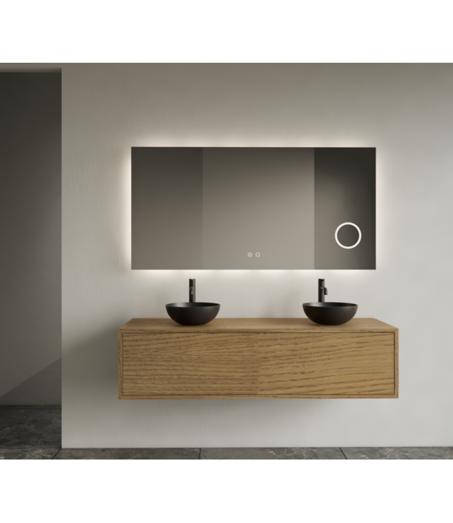 Het badmeubel is voorzien van een ruime onderkast met topblad, met een optionele push&pull softclose lade uitgerust met metalen geleiders van BLOEM. Geen uitsparingen in het blad geven je de vrijheid om je eigen waskom te kiezen en te plaatsen waar je wilt.