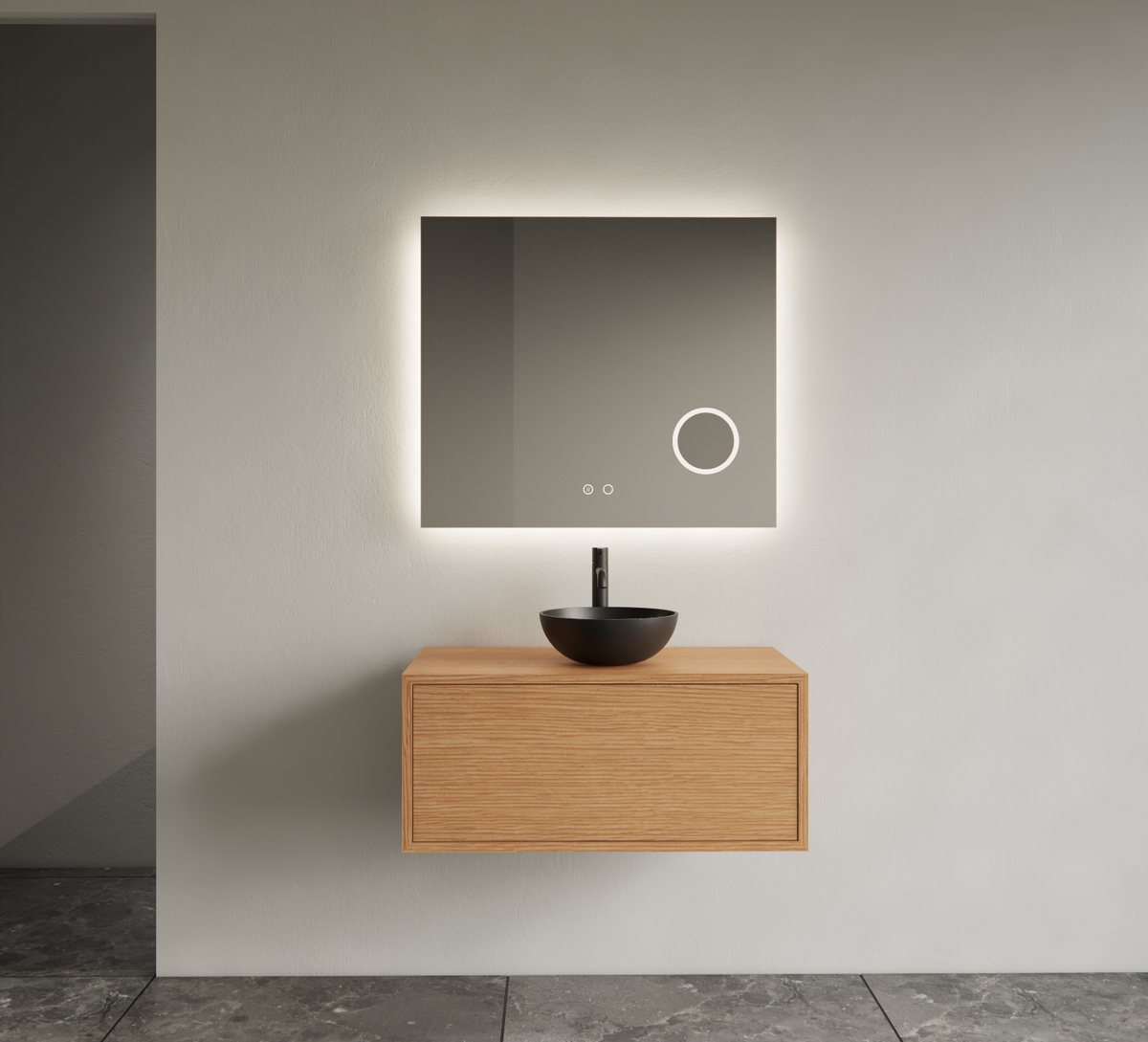 De optionele push&pull softclose lade met metalen geleiders van BLOEM zorgt voor moeiteloos openen en sluiten, terwijl de strakke lijnen en moderne uitstraling je badkamer naar een hoger niveau tillen. Dit houten badkamermeubelheeft geen uitsparingen in het bovenblad, waardoor je zelf de vrijheid hebt om het perfect aan te passen aan jouw stijl.