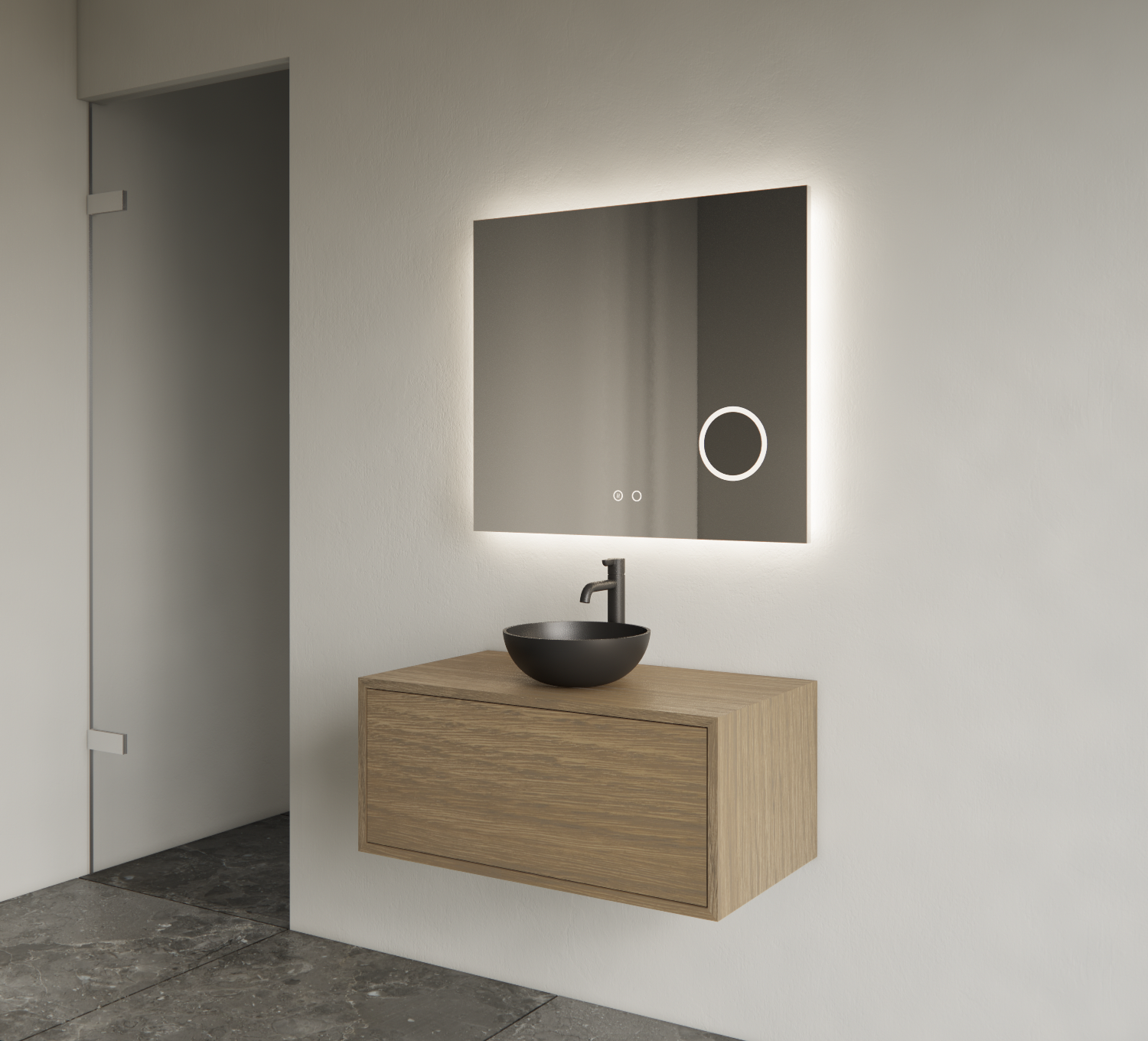Met afmetingen van 800x450x350mm biedt dit badmeubel voldoende opbergruimte zonder dat het te veel ruimte inneemt. De optionele push&pull softclose lade met metalen geleiders van BLOEM garandeert een soepele en stille werking. Dit badmeubel met topblad heeft een strak bovenblad zonder uitsparingen, wat ideaal is voor het combineren met een stijlvolle waskom.