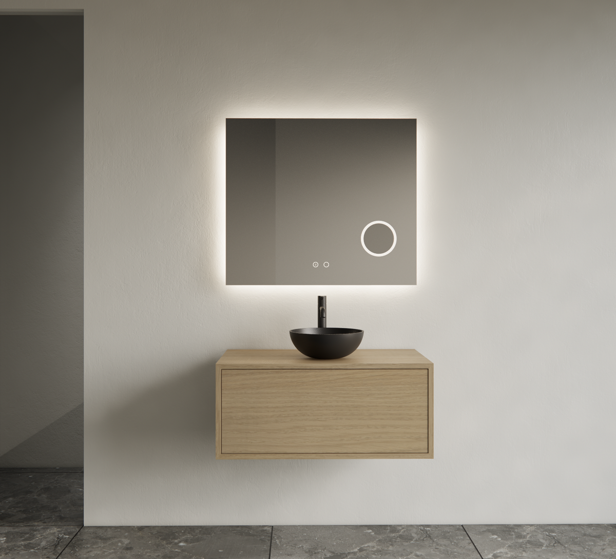 Wastafelnderkast Fineer Eiken ✓800x450x350mm ✓ Incl. bovenblad ✓ Bovenblad zonder uitsparingen ✓ 1x Softclose lade met metalen geleiders van BLOEM ✓ Beschikbaar in 7 kleuren en maten van 60cm tot 200cm