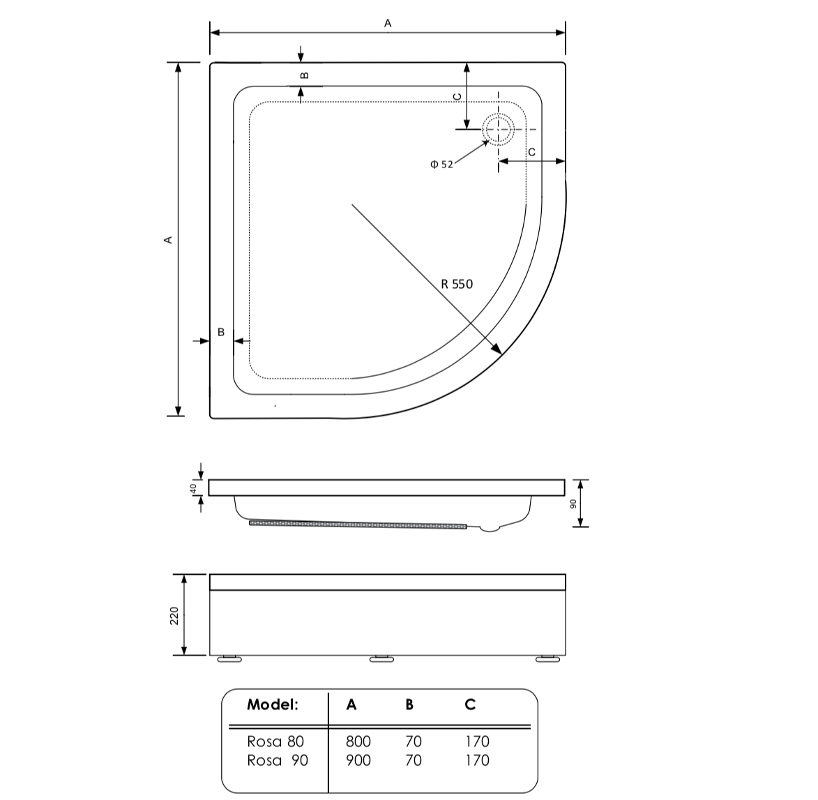 Deze kwartronde douchebak, vervaardigd van hoogwaardig acryl, is een meesterwerk van Gliss Design. De heldere witte kleur past naadloos in elke badkamerstijl en creëert een tijdloze uitstraling. De Rosa serie staat bekend om zijn compromisloze kwaliteit en vakmanschap, en dat zie je terug in deze prachtige douchebak.