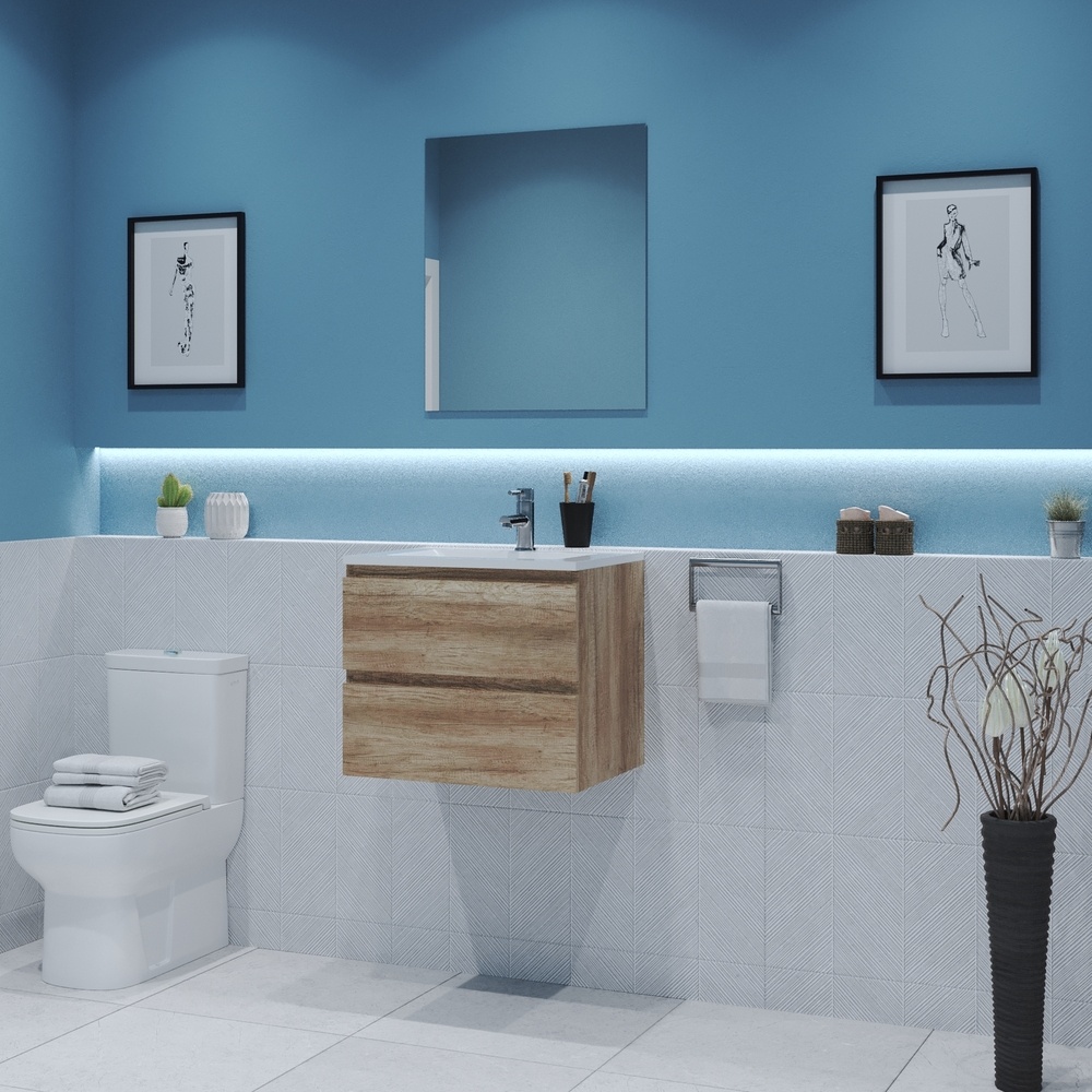 Ontdek het beste van beide werelden met ons Badkamermeubel 60 cm Canyon Oak met bijpassende wastafel. Bij Sani4Comfort streven we ernaar om hoogwaardige badkameroplossingen aan te bieden die zowel elegantie als functionaliteit belichamen. Dit tijdloze design uit onze Gliss Design Projectserie biedt een uitstekende prijs-kwaliteitsverhouding en zal een ware aanwinst zijn voor elke badkamer.