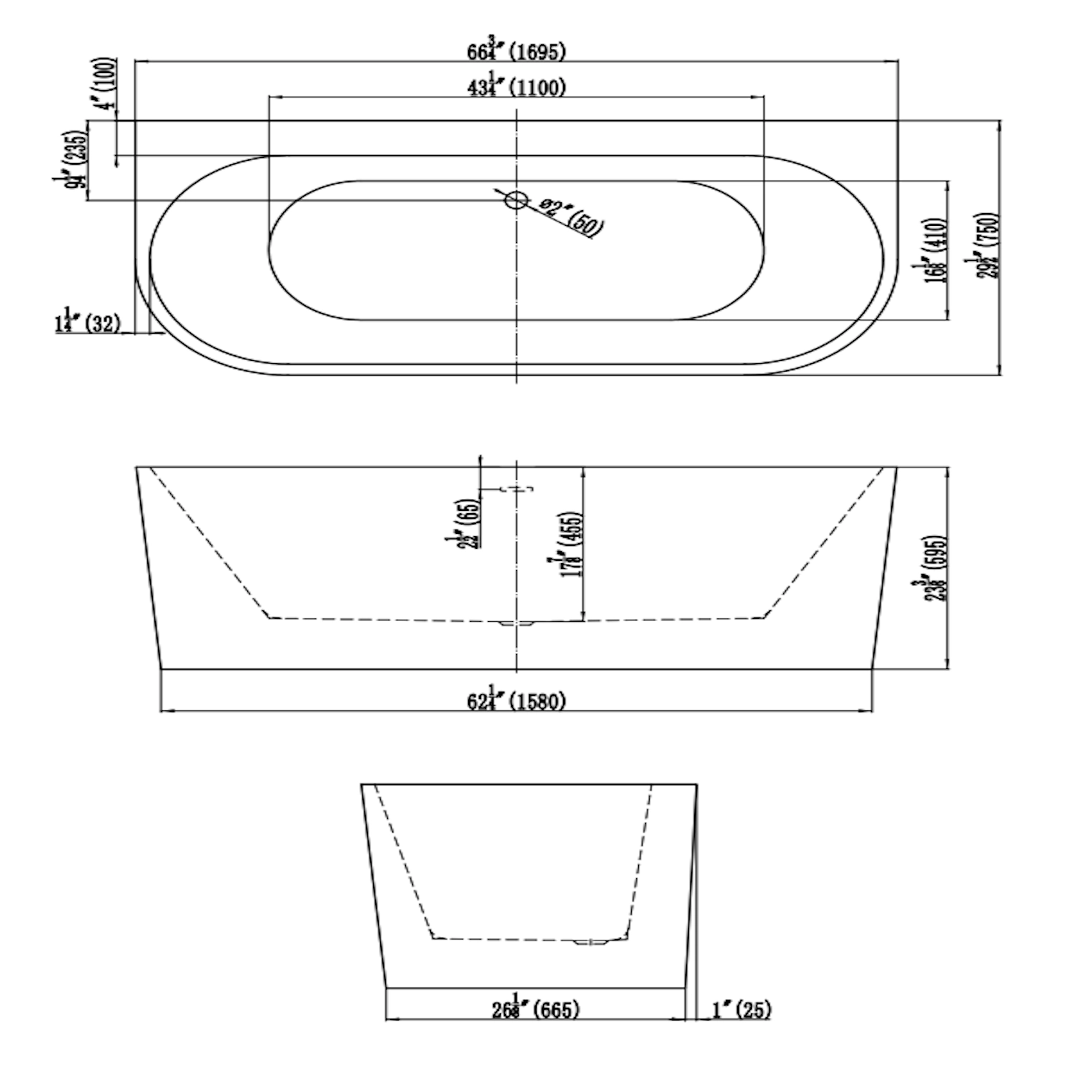 Half Vrijstaand bad ✓ Acryl materiaal ✓170x75x60cm ✓ Bad met ovale vorm ✓ Glans Wit ✓ Met click waste ✓ Met overloop en verstelbare poten
