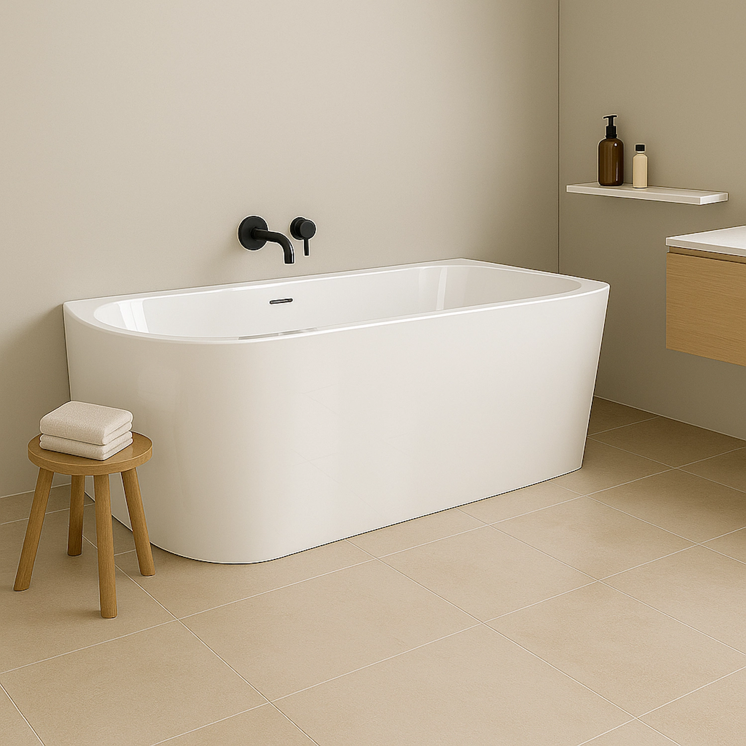 De geïntegreerde overloopfunctie voorkomt ongewenst morsen, zodat je zorgeloos kunt genieten. Dankzij het half vrijstaande ontwerp kan het bad strak tegen de muur worden geplaatst, terwijl het toch het luxueuze effect van vrijstaande baden behoudt.