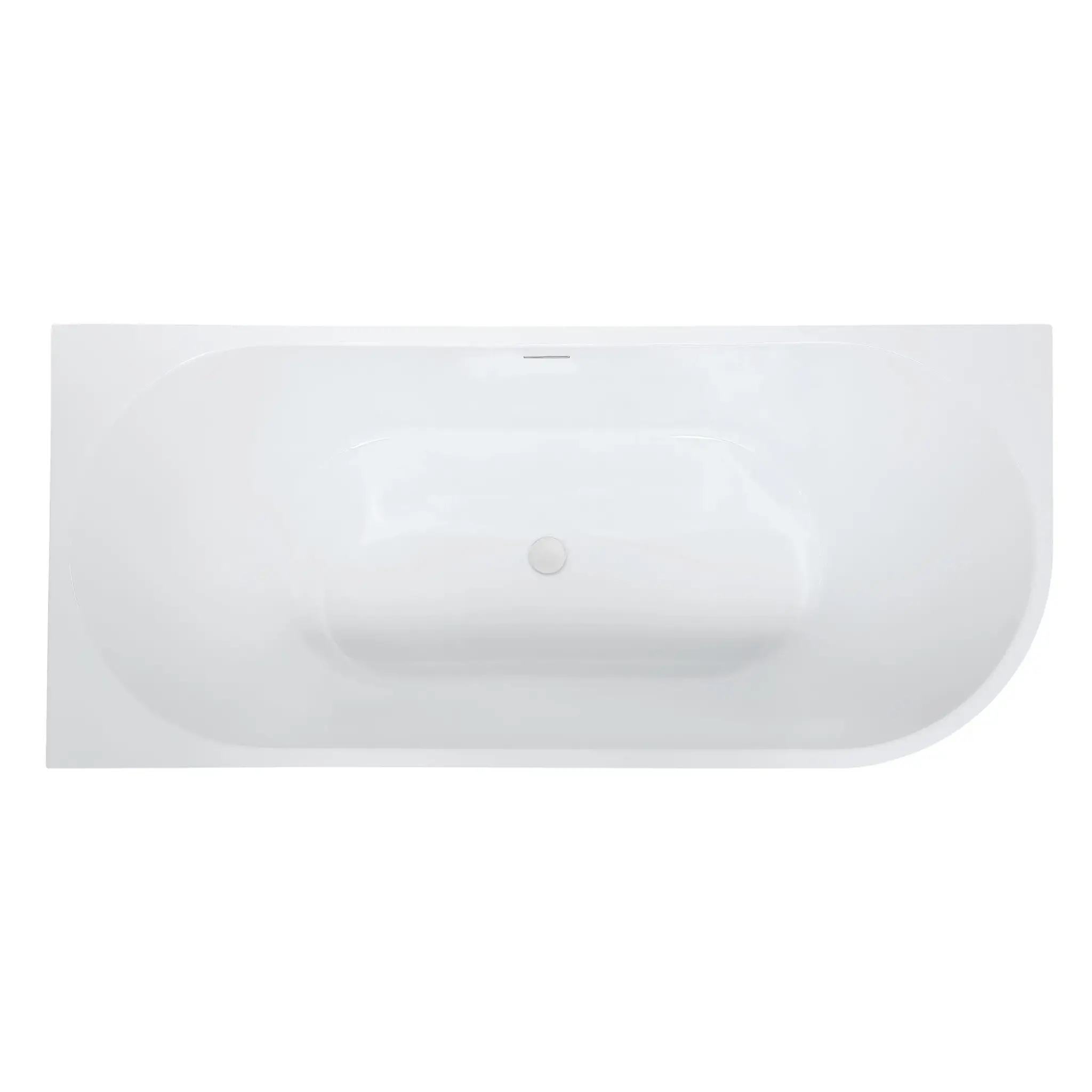 Dit half vrijstaand bad is ontworpen om in de linkerhoek van je badkamer te passen, waardoor het een slimme keuze is voor ruimtes met beperkte ruimte. De moderne lijnen en glans witte afwerking zorgen ervoor dat dit bad er niet alleen goed uitziet, maar ook gemakkelijk te combineren is met verschillende badkamerstijlen.