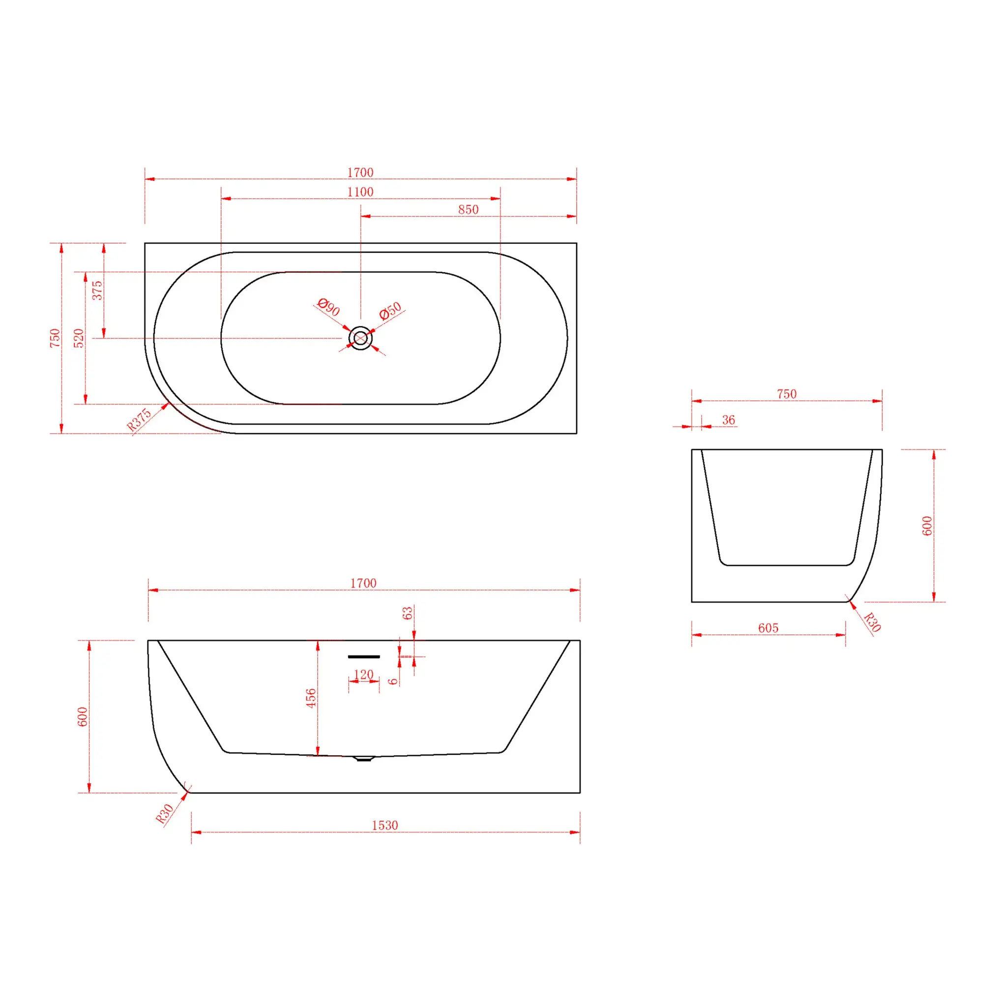 Dit bad is gemaakt van hoogwaardig acryl, waardoor het duurzaam en gemakkelijk te onderhouden is. De stabiele constructie zorgt ervoor dat u veilig en comfortabel kunt genieten van uw badervaring. De afvoer is in het midden geplaatst voor een optimale waterafvoer.