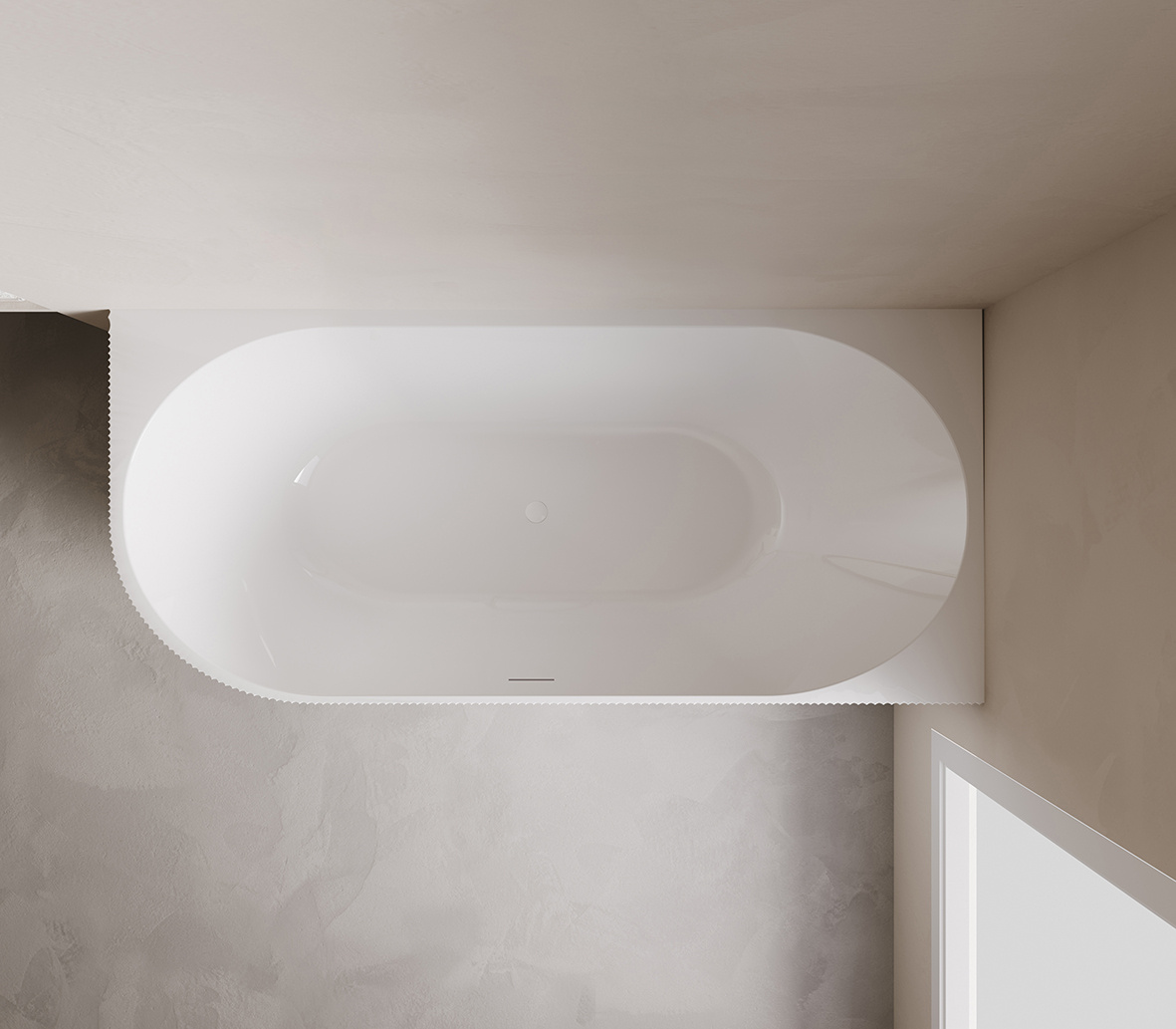 Het kenmerkende geribbelde design geeft deze badkuip een expressieve en trendy uitstraling. De ribbelstructuur voegt niet alleen karakter toe, maar zorgt ook voor: