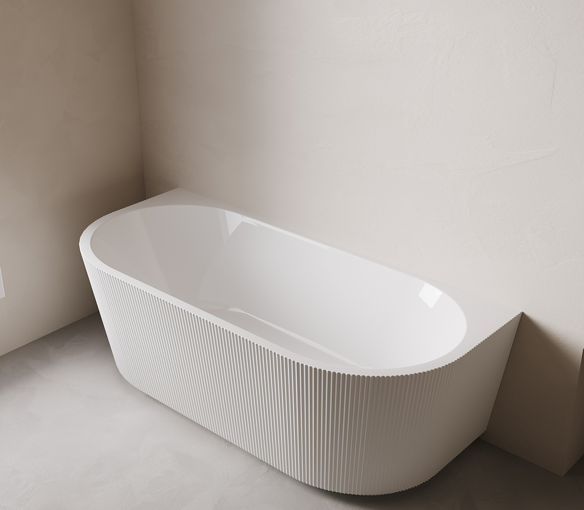 Het opvallende geribbelde design creëert een dynamische schaduwwerking en geeft dit bad een exclusieve uitstraling.
