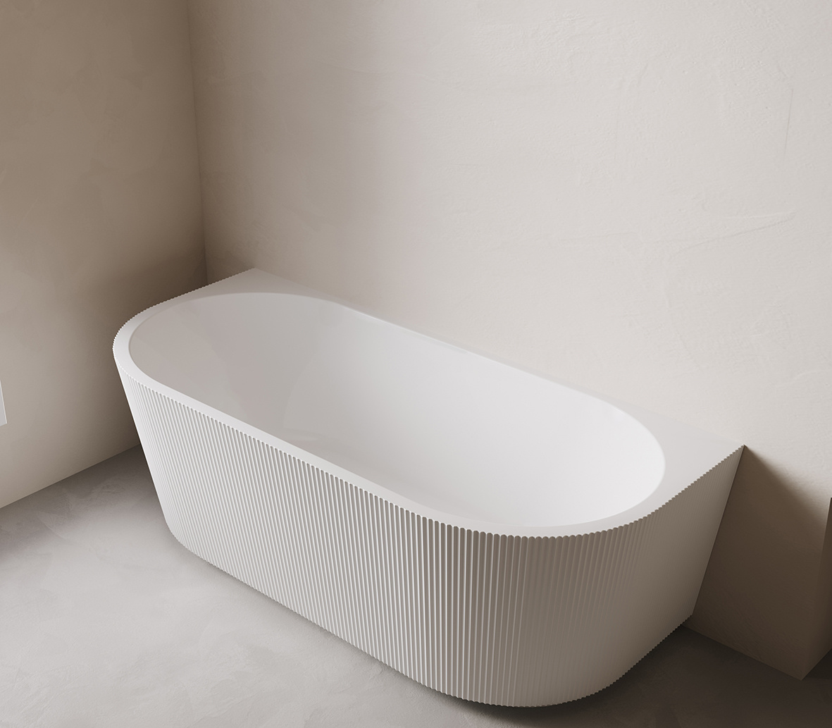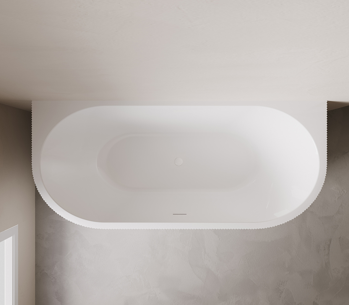 Halfvrijstaand ligbad met ribbels – Rivi Mat Wit 180x80cm