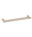 Wat direct opvalt aan dit model, is de combinatie van de dubbele stang en de tactiele afwerking. Waar standaard accessoires vaak onopvallend zijn, breekt deze handdoekhouder met de traditie door een unieke ribbelstructuur aan de uiteinden. Dit reliëf geeft het geborstelde brons een extra dimensie; de textuur vangt het licht op een subtiele manier op, wat de warme koperen ondertonen versterkt. De dubbele uitvoering biedt bovendien ruimte voor twee grote badlakens, waardoor je badkamer direct de georganiseerde uitstraling van een high-end hotel krijgt.