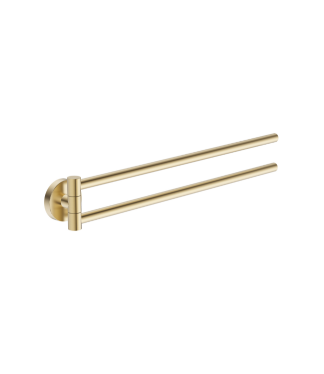 Creëer moeiteloos een luxueuze sfeer in uw badkamer met het Handdoekrek Effeze. Dit handdoekenrek combineert functionaliteit met een verfijnde esthetiek, perfect voor wie met een beperkt budget groots wil uitpakken. Het dubbele, draaibare ontwerp in geborsteld goud biedt optimale ruimte voor handdoeken en een chique uitstraling.