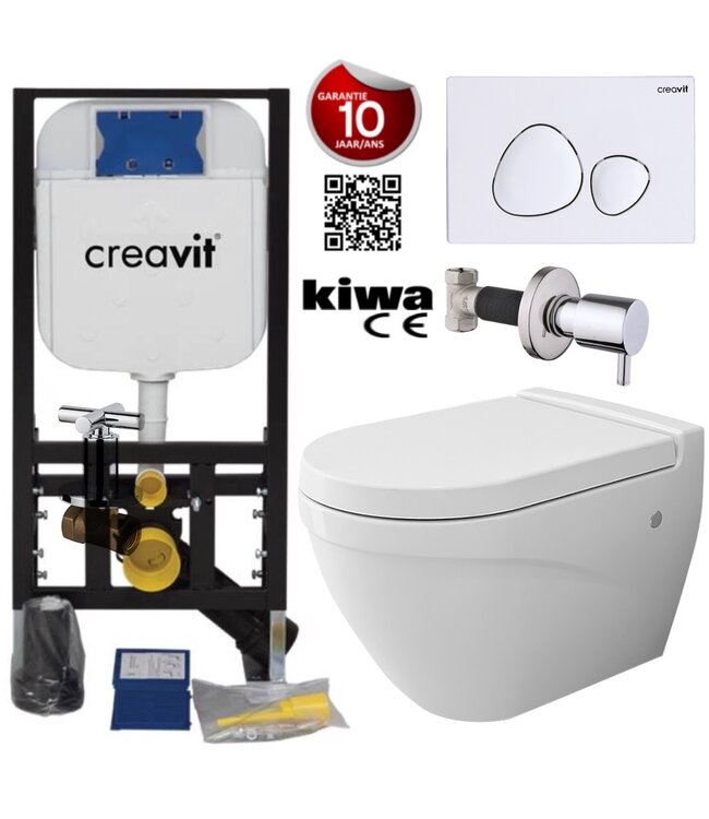 CREAVIT Hangtoilet Set met Bidet Compleet Wandcloset Bocchi Taormina Wit incl Toiletbril