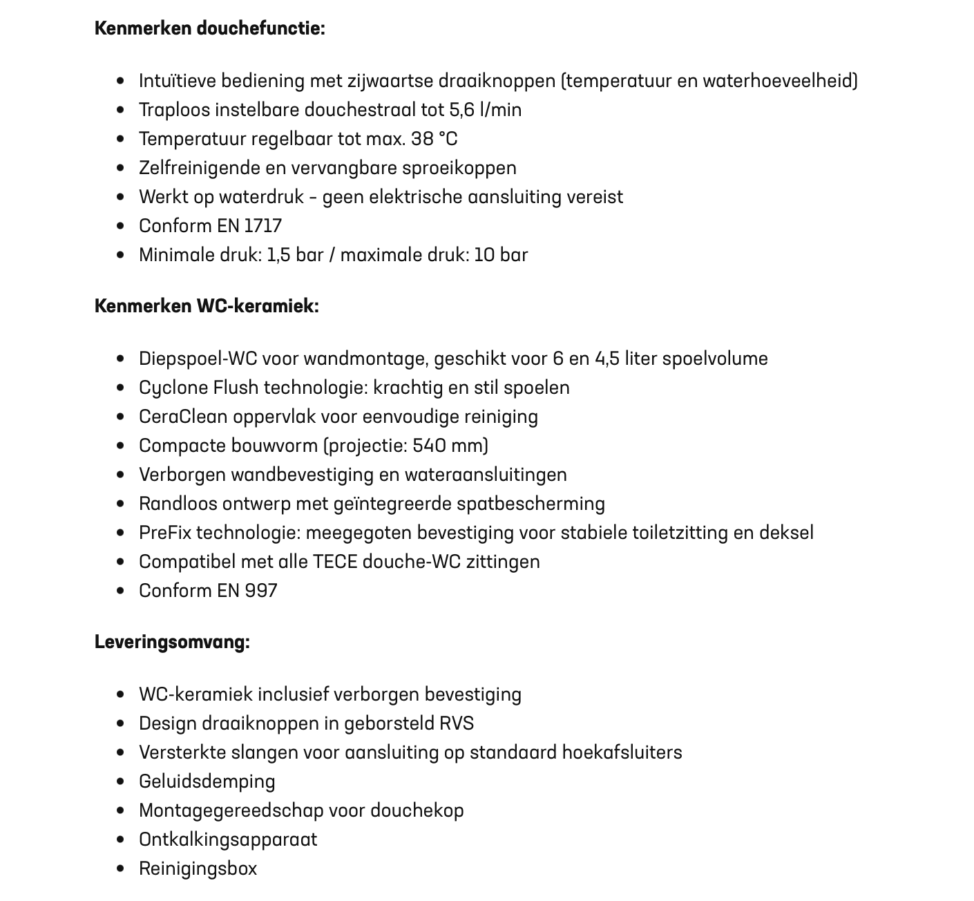Incl. bidetkraan | Ja Geintegreerd - Warm/Koud aansluiting |