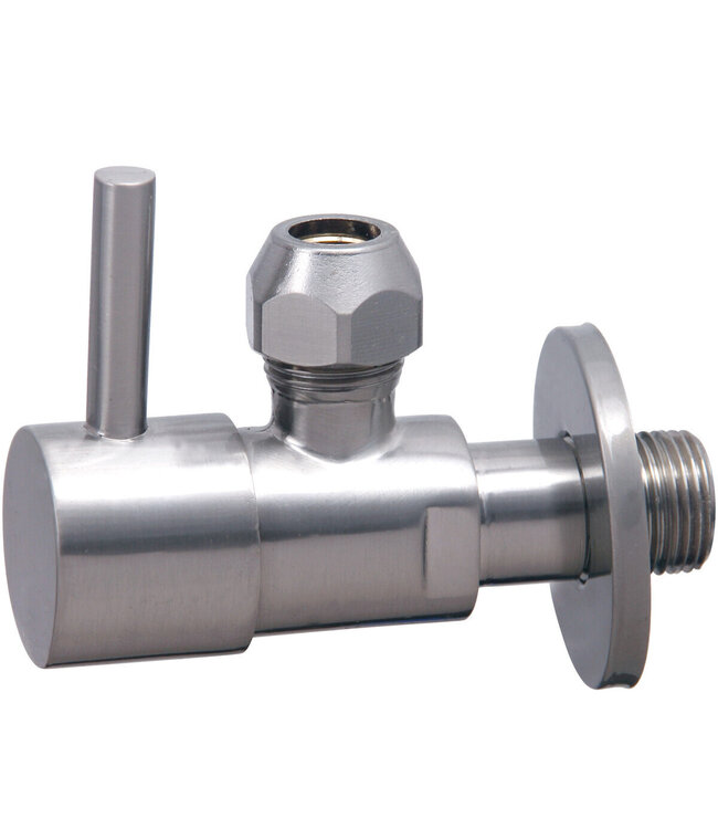Deze stijlvolle hoekstopkraan is gemaakt van hoogwaardig messing en heeft een moderne afwerking in geborsteld staal. Dankzij het compacte ontwerp van 78 mm is deze stopkraan ideaal voor elke badkamer of keuken. De kraan is geschikt voor een aansluiting van 3/8" x 3/8" of knel 10 mm en biedt twee jaar fabrieksgarantie. Voeg een verfijnde uitstraling toe aan uw sanitair met deze duurzame oplossing.