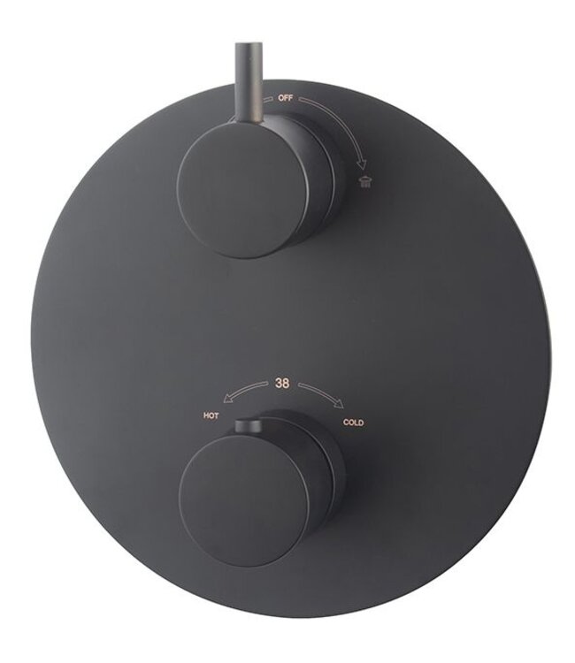 Een naadloze harmonie tussen functionaliteit en stijl, de Wiesbaden Caral afbouwdeel Rond 2-wegs Mat Zwart - 29.1540 biedt een verfijnde oplossing voor je douche-ervaring. Met geavanceerde eigenschappen die gericht zijn op comfort en gebruiksgemak, is deze inbouw douchekraan een essentiële toevoeging aan elke moderne badkamer.