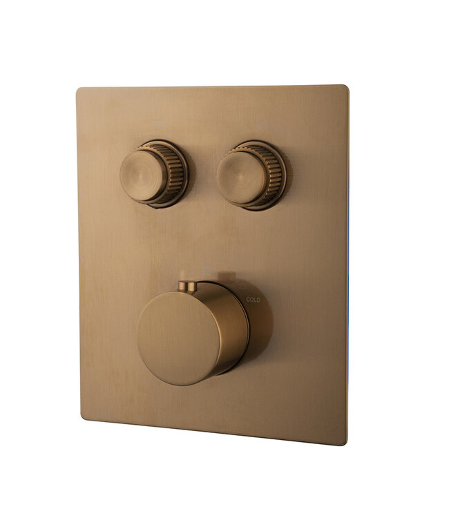 De Wiesbaden Caral Klik Pro afbouwdeel 2-wegs thermostatische regeling zorgt ervoor dat je altijd kunt genieten van de perfecte watertemperatuur. De begrenzer op 38°C ervoor zorgt dat de kraan veilig te gebruiken is, zelfs door kinderen. Met de mogelijkheid om de waterdruk naar wens aan te passen door eenvoudig aan de knoppen te draaien, heb je volledige controle over je douche-ervaring.