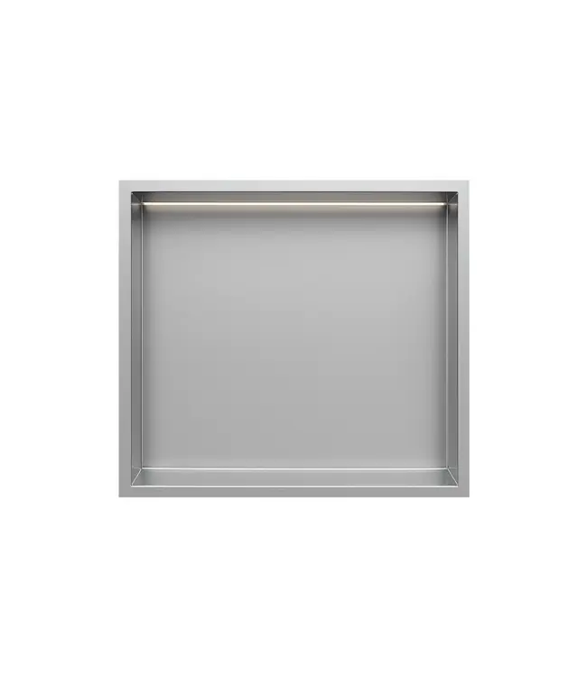 De Inbouwnis badkamer met LED-licht 30x30x7cm RVS van de DutchLine collectie is dé perfecte combinatie van functionaliteit, luxe en stijl. Deze hoogwaardige badkamer nis creëert extra opbergruimte voor shampoo, zeep en badkameraccessoires, terwijl de subtiele LED-verlichting zorgt voor een warme en verfijnde sfeer in uw badkamer of douche.