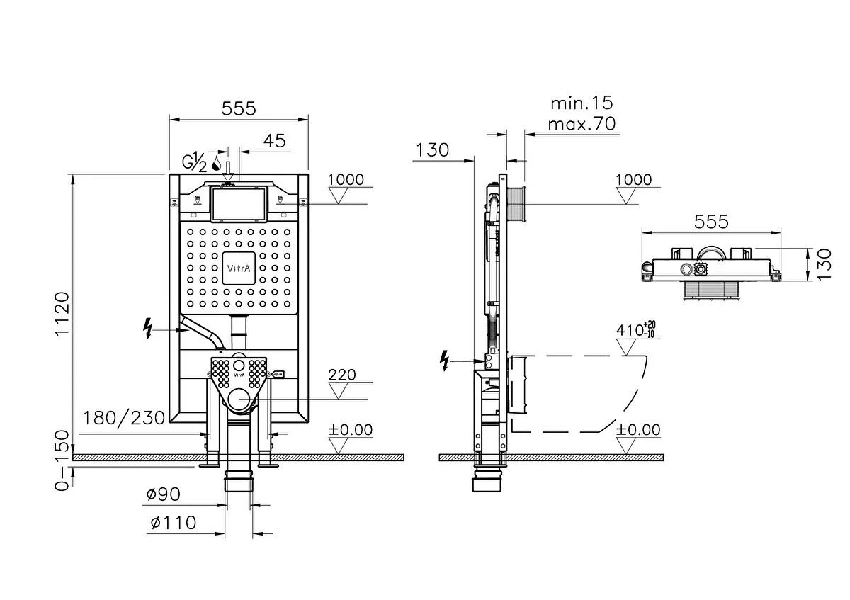 Met een hoogte van 1127 mm en een breedte van 555 mm past dit inbouwelement naadloos in vrijwel iedere badkamer. Het systeem is speciaal ontwikkeld voor montage in gipswanden en biedt een solide basis voor je inbouw toilet.