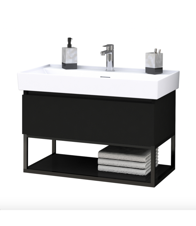 Het solide zwarte frame van 3cm gecoat staal maakt het mogelijk om uw badkamermeubelset helemaal naar eigen smaak te ontwerpen. U kunt de stalen frames afzonderlijk bestellen wanneer u dit badkamermeubel in bestelling heeft geplaatst. Het maatwerk van de wastafel sluit naadloos aan op het badkamermeubel. Keramiek is uitermate geschikt voor vochtige ruimtes. Dit komt door de gesloten porien van het keramiek. Hierdoor krijgen vuil en zeepresten geen kans om zich te hechten aan het oppervlak van de wastafel.