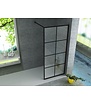 Douchewand Inloopdouche 140cm Mat Zwart Raster Industrieel 8mm Veiligheidsglas zijn verkrijgbaar in 5 verschillende maten ( 80cm - 90cm - 100cm - 120cm - 140cm) en zijn standaard 200cm hoog en gemaakt met 8mm veiligheidsglas met een anti kalk coating, waardoor vuil en kalk zich minder snel aan het glas zal hechten.